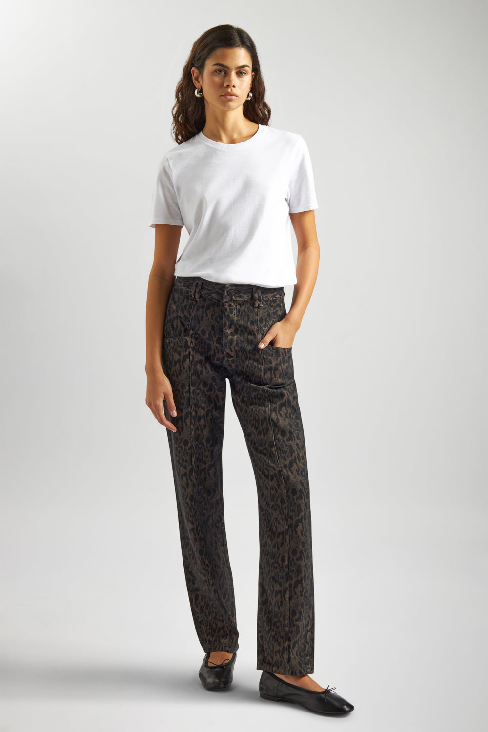 The Stockholm jeans feature a bold, innovative silhouette with roomy legs that taper towards the ankle. This unique style offers extra volume at the top for a modern, relaxed look, combining comfort and trend.