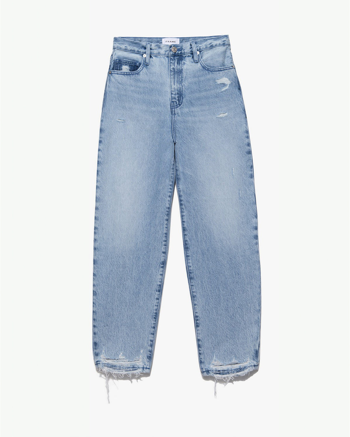 This ultra-high-rise barrel jean is made with sustainable denim and ensures a fresh and modern look. The leg-elongating silhouette features curved seams with an architectural shape that stands with everything from tees and blouses to blazers and shirts. Paired with this design-forward silhouette, edgy Clashwith its frayed ankle rips and distressed detailsis the ultimate work-to-weekend wash.